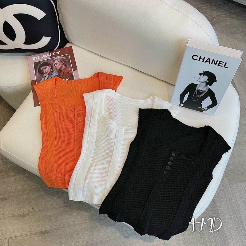 ✔️ Tên sản phẩm: Áo len Montoghi dệt kim VAI HẾN CỔ VUÔNG dáng ôm phối nút độc đáo