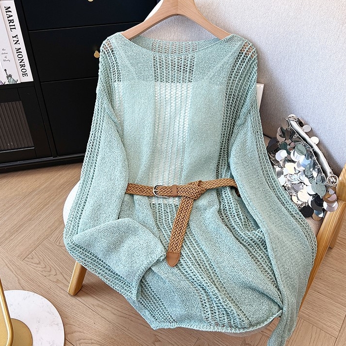 ✔️ Tên sản phẩm: Áo len LƯỚI montoghi dệt kim LỖ TRÒN TAY DÀI form rộng mặc ngoài đi biển dễ phối đồ