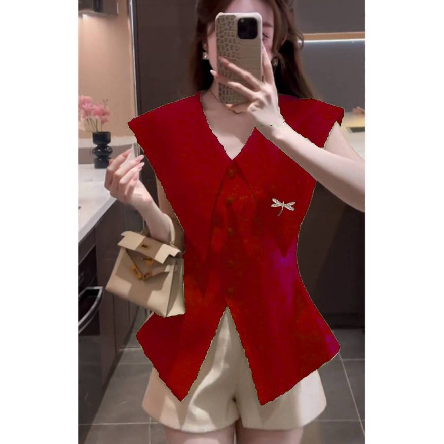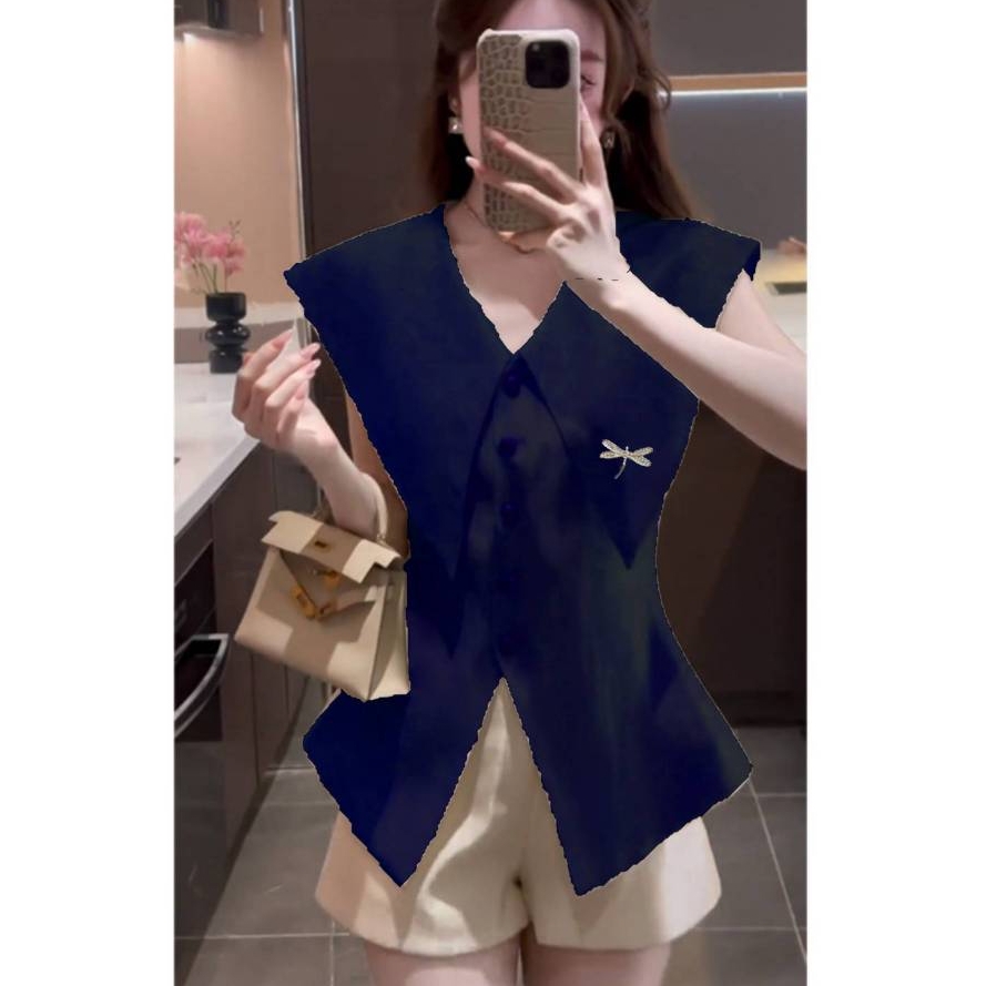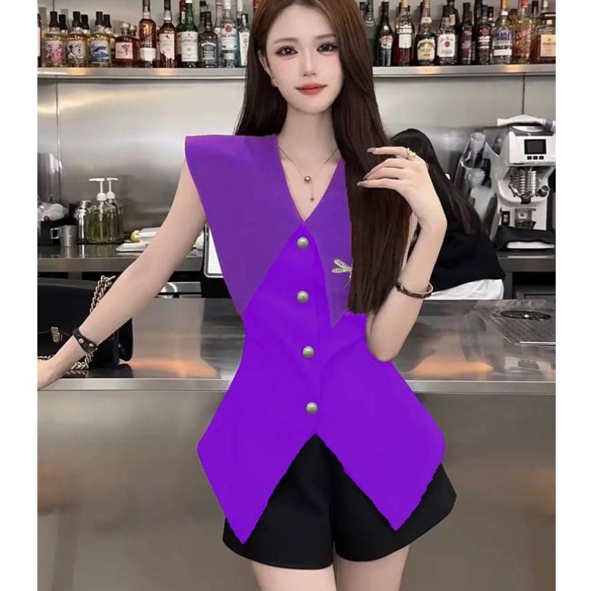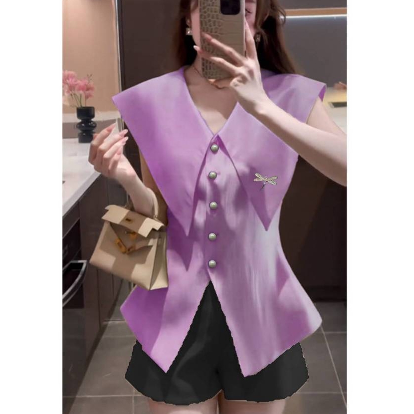 ✔️ Cổ nhọn không tay phối nhún eo 2 bên hông tôn dáng