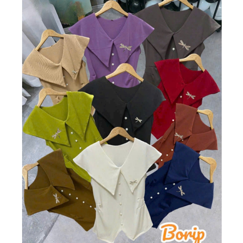 ✔️ Tên sản phẩm: Áo thun kiểu nữ CỔ NHỌN CÀI KHUY CHUỒN CHUỒN borip xẻ tà co giãn 4 chiều tôn dáng