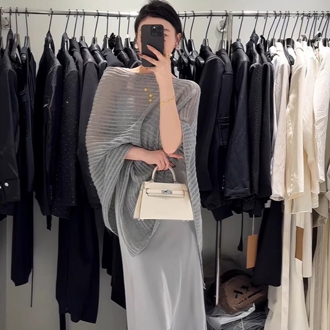 ✔️ Tên sản phẩm: Áo LƯỚI len Montoghi dệt kim CHUI ĐẦU VẠT NHỌN phối choàng phong cách sang trọng