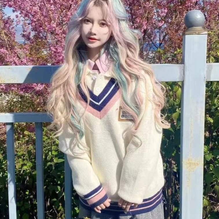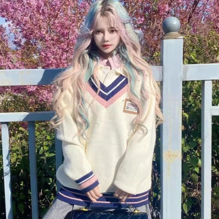 ✔️ Thiết kế 1 áo phối kiểu gile cổ cùng chất liệu len, phong cách Hàn Quốc cá tính