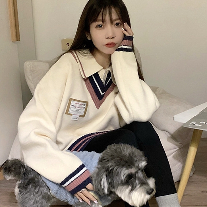 ✔️ Tên sản phẩm: Áo len nữ Montoghi THU ĐÔNG KIỂU GILE VIỀN PHỐI TAG cổ len phom rộng Hàn Quốc cá tính