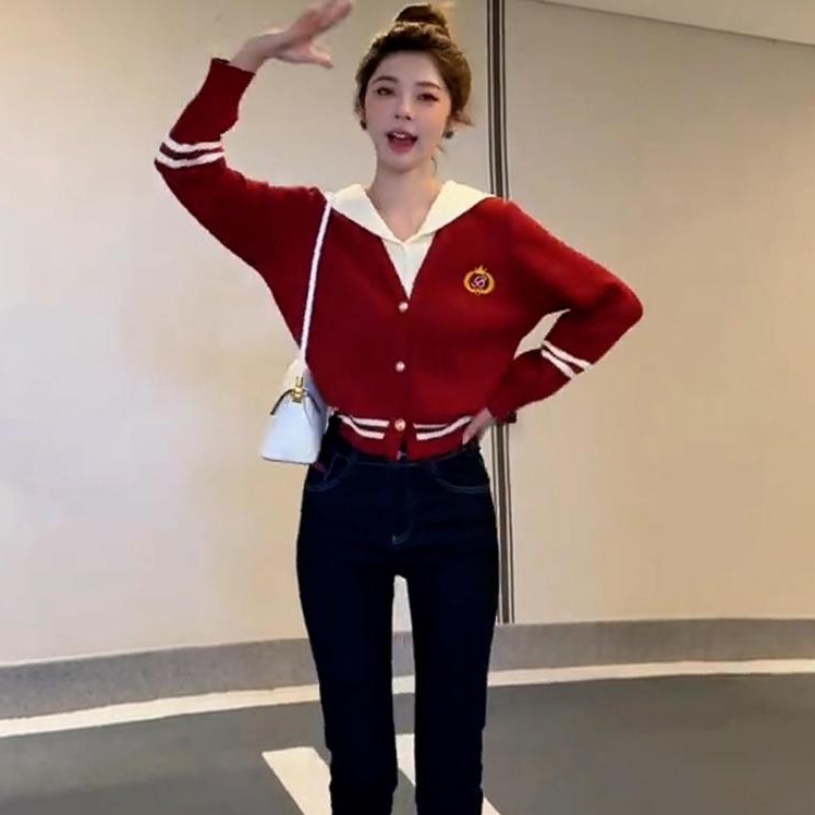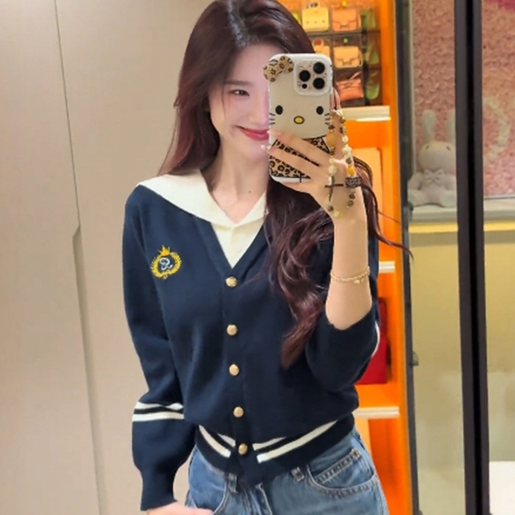 ✔️ Tên sản phẩm: Áo len nữ Montoghi dệt kim CỔ V THỦY THỦ PHỐI VIỀN LOGO cài nút vàng tay dài sang trọng