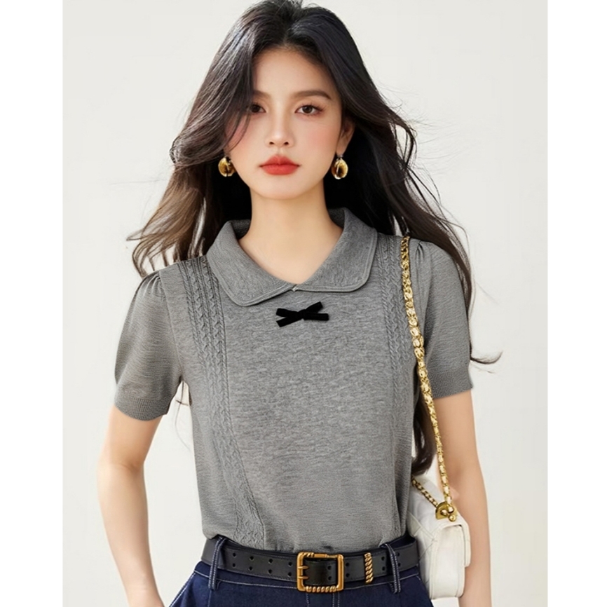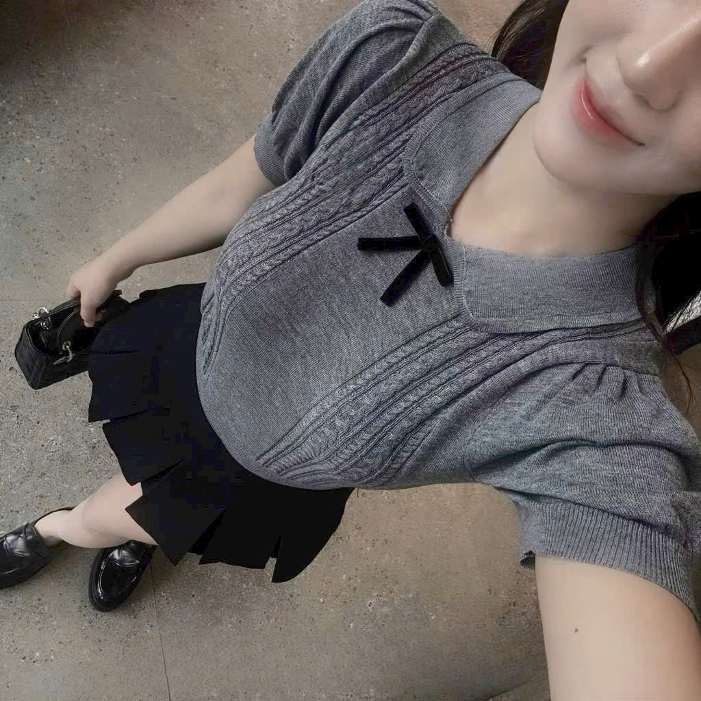 ✔️ Tên sản phẩm: Áo len nữ Montoghi dệt kim Quảng Châu PHỐI NƠ ĐEN họa tiết THỪNG 2 BÊN xinh xắn điệu đà