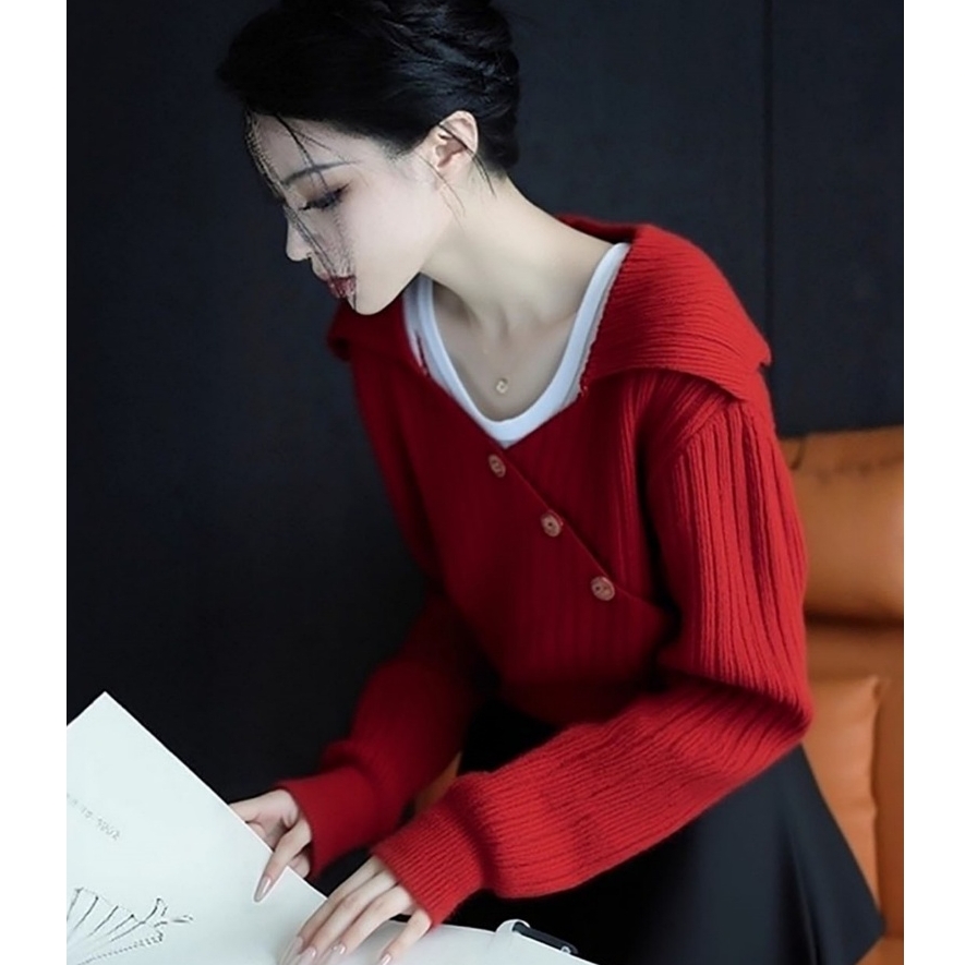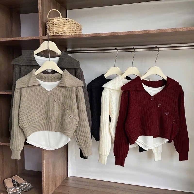 ✔️ Tên sản phẩm: Set (2 MÓN) áo len dệt kim CỔ V BẺ NÚT CHÉO TRƯỚC và ÁO 3 LỖ tay dài dáng c'roptop siêu hot