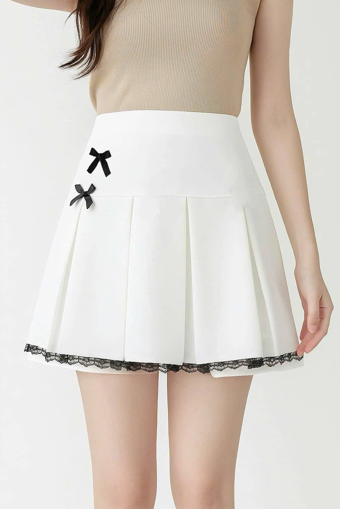 ✔️ Tên sản phẩm: Quần giả váy nữ 2 NƠ HÔNG phối VIỀN REN kiểu lưng thun co giãn chất tuyết mưa xinh xắn