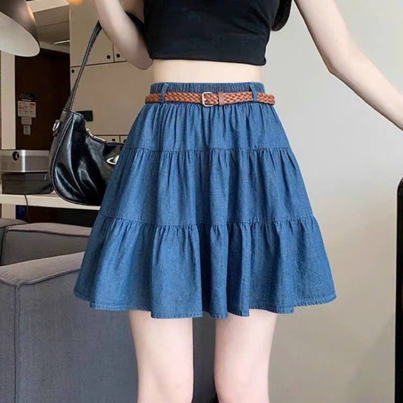 ✔️ Tên sản phẩm: Chân váy xòe chữ A JEANS LỤA 3 NGĂN có lót trong dáng ngắn xinh xắn